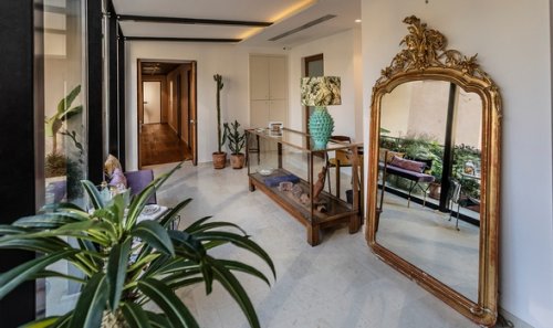 obývacím pokojem a psacím stolem, nacházejí se v nejvyšším patře
