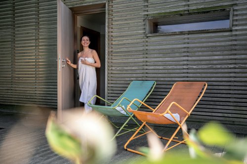 parní lázeň, zážitková sprcha), lekce jógy a masáže*, půjčovna kol* a