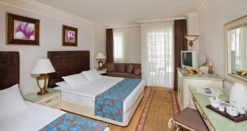 Rozlehlý hotelový komplex je tvořen hlavní vícepatrovou budovou se 2 ubytovacími křídly a několika dalšími nižšími budovami a dále centrální částí s bazény vsazenou do rozlehlé hotelové zahrady přecházející k pláži. Uvítá Vás prostorná elegantní recepce s výtahy a lobby barem. Ke stravování jsou k dispozici hlavní restaurace s venkovní terasou, dále 7 tematických a´la carte restaurací (turecká, rybí, japonská, italská, čínská, sushi, mexická), k příjemnému posezení a občerstvení slouží celkem 8 barů (vnitřní i venkovní, pool snack bar, beach bar), nechybí kavárny, obchodní pasáž, společenská TV místnost, herna, směnárna, internetový koutek, konferenční a business centrum, herna, diskotéka aj. K relaxaci je hostům (za poplatek) k dispozici hotelové Spa a wellness centrum s bazénem, tureckými lázněmi, saunou, párou, relaxačními místnostmi, možností masáží a revitalizačních či kosmetických procedur. Nechybí dobře vybavené fitness centrum. Venkovní areál nabízí hlavní velký bazén (2321 m2), bazén se skluzavkami (309 m2), relaxační bazén (312 m2) a samostatný dětský bazén (30 m2). Ty obklopují velké sluneční terasy s lehátky a slunečníky (zdarma, i na hotelové pláži). K aktivnímu odpočinku slouží tenisový kurt, multifunkční hřiště, stolní tenis, šipky, kulečník, na pláži plážový volejbal či středisko vodních sportů a potápěčská škola. Pro nejmenší hosty je zde mini klub, junior klub, lunapark, hřiště, dětská diskotéka. Hotel pořádá denní a večerní animační programy pro všechny věkové kategorie (zábavné, soutěžní, společenské).