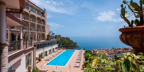 Hotel se nachází na kopci s nádherným výhledem na letovisko Letojanni a
