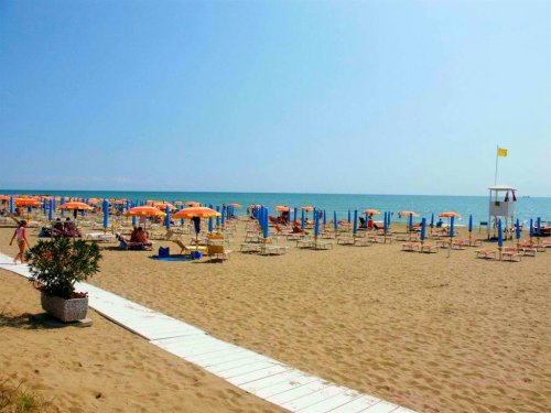 Písečná pláž se nachází cca 300 m od hotelu, plážový servis v ceně (1 slunečník a 2 lehátka/pokoj od 3. řady) v termínu od cca 12.5. do 18.9.2024. Lido di Jesolo se pyšní téměř 15 km dlouhou pláží s jemným pískem a pozvolným vstupem do moře. Každoroční prestižní ocenění Modrá vlajka, kterou uděluje evropská komise za kvalitu a čistotu pláží, je tu samozřejmostí. Letovisko je hojně navštěvované především rodinami s dětmi.