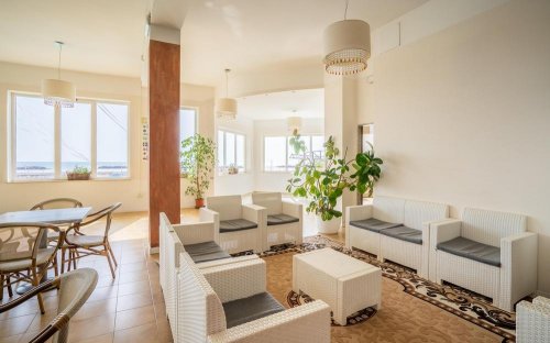 Nabízí pohodové ubytování, bazén s výhledem na moře a bohatou stravu.