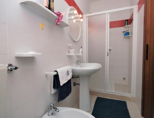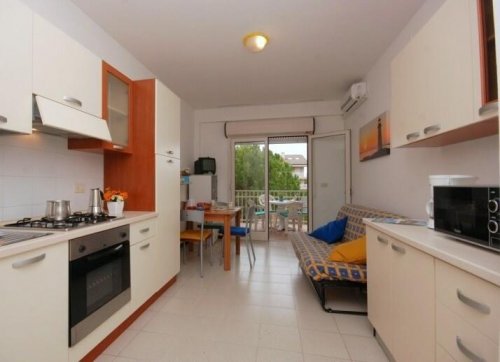 koupelna, plně vybavený kuchyňský kout, mikrovlnná trouba, TV, klimatizace BILO B-4 – max 4 osoby, obývací pokoj s rozkládací pohovkou pro 2 osoby, ložnice s manželským lůžkem, balkon