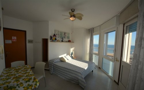 Apartmán MONO pro 2 osoby, jednopokojové studio s manželskou postelí, TV, kuchyňským koutem, koupelna/wc, velká terasa s výhledem na moře vybavenou stolem, židlemi a dvěma lehátky. Apartmán TRILO pro 6 osob, třípokojový apartmán, 2× dvoulůžkový ložnice, obývací pokoj s rozkládacím dvougaučem a kuchyňským koutem, koupelna/wc, balkon