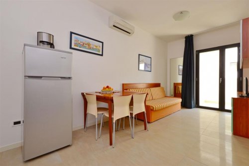 Apartmán pro 2–3 osoby se skládá z obývací místnosti s kuchyňským koutem a rozkládací pohovkou pro jednu osobu, ložnice s manželskou postelí, vlastním sociálním zařízením a balkonem s posezením. Apartmán se nachází v 1.–4. patře.