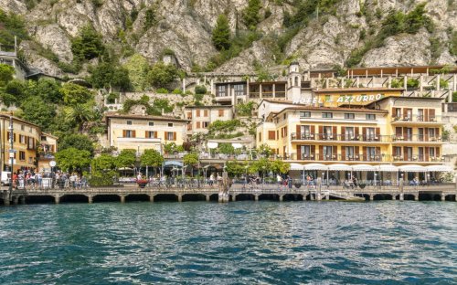 Hotel leží přímo u jezera, v historickém centru u pěší zóny letoviska se nachází čtyřhvězdičkový hotel All Azzurro, obklopený je citrusovníky a oleandry, má romantickou polohu u malebných uliček a modré vody s blízkým přístavištěm. Vybavení hotelu: Recepce, restaurace s panoramatickou terasou, v nejvyšším patře je bazén se slunečníky a lehátky (v provozu v závislosti na počasí), parkoviště (omezený počet míst v nedalekém hotelu, odtud vás doh hotelu doprovodí shuttle), možnost garážového stání nedaleko za poplatek.