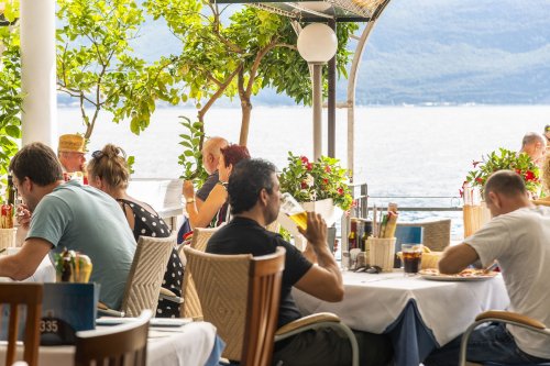 Polopenze – snídaně formou bufetu, večeře výběr z menu, salátový bufet, do 15.5. a od 4.10. v ceně také 1⁄4 vína a 1⁄2 l vody nebo nealko nápoj pro děti.
