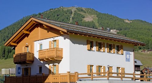 Livigna, poblíž jezera. V okolí se nachází obchody, restaurace a další