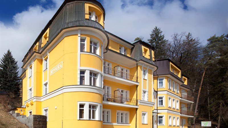 Lázeňský hotel Riviera se nachází v blízkosti centra lázní. Nabízí pohodlné ubytování v klidné části u vstupu do lázeňského parku Procedury jsou podávány v Centrálních lázních a Inhlatoriu (cca 50 – 1000 m).