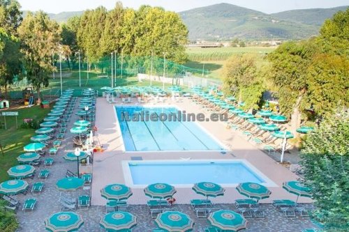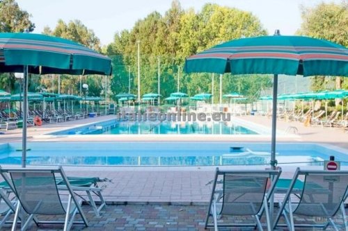 místnost, půjčovna kol, dva bazény, dětský bazén, dětské hřiště,