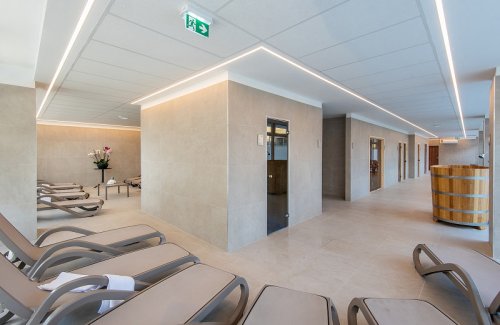 sauna, biosauna, infrasauna, pára, relaxační koutek, terasa s lehátky,