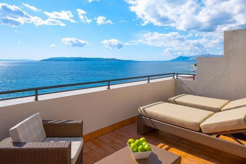 Tento krásný, zcela zrenovovaný hotel se nachází v docházkové vzdálenosti od centra města Makarska. U venkovního bazénu si můžete vychutnat jedinečné výhledy na křišťálově průzračné moře a okolní ostrovy, a to za denního světla, či při západu slunce. Hotel disponuje recepcí, lobby barem s bohatou nabídkou nápojů, restaurací, á la carte restaurací La Pentola Trattoria Italiana, venkovním snack barem u bazénu, konferenční místností, parkováním (za poplatek, omezená kapacita) a WiFi připojením v celém hotelu zdarma. Majitelé elektromobilů jistě ocení EV dobíjecí stanici. Dále můžete využít také hotelové wellness centrum, mezi jehož vybavení patří vnitřní vyhřívaný bazén se sladkou vodou, sauna, či posilovna (některé služby mohou být zpoplatněny, ceny dle aktualniho ceniku na recepci). Za poplatek lze sjednat masáže, kosmetické procedury, manikúru, pedikúru a další. Od 1. 6. 2026 bude nově otevřeno wellness SUN & SPA o rozloze cca 500 m2. Před hotelem se nachází infinity bazén s mořskou vodou a vyhřívaný dětský sladkovodní bazén pro děti s atrakcemi. U bazénu jsou k dispozici pro klienty zdarma lehátka a slunečníky, ručníky a převlékací kabinky.