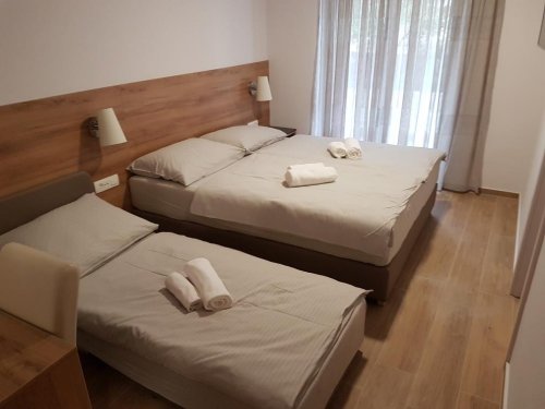 Kompletně zrekonstruovaný pension Mara (dříve Kameni Dvori) přivítal své první hosty v květnu 2017. Moderní pension s novým vybavením leží cca 450 m od oblázkové pláže a přibližně 1,3 km od centra města. V okolí pensionu se nachází lékárna, obchod s potravinami, lékař, bankomat a pekárna. Pension je vhodný pro všechny, kteří vyhledávají rušnou dovolenou s bohatou nabídkou sportovního a kulturního vyžití a nočním životem tepajícím do ranních hodin. K vybavení pensionu patří recepce, restaurace, výtah, WiFi připojení a parkoviště (pro max. 2 vozidla, za poplatek cca 5 €/den, nelze předem rezervovat). V případě vyprodání parkovacích míst, mohou klienti zaparkovat své auto na parkovišti vzdáleném cca 100 m (za poplatek na místě).