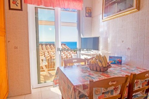 lednice, pračka, mikrovlnná trouba a balkon s úchvatným výhledem na moře