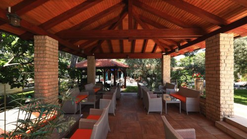recepce, restaurace, venkovní bazén, bar u bazénu, terasa, dětské hřiště, parkoviště za poplatek.
