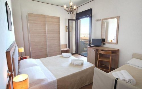 Široká písečná pláž s pozvolným vstupem do moře je pro letovisko Milano Marittima a celou oblast Emilia Romagna typická. Plážový servis od 4. řady od moře je pro hosty hotelu v ceně pobytu a zahrnuje 1 slunečník a 2 lehátka nebo židličky/pokoj na pláži Bagno Colombina 320, která je vzdálená cca 70 m od hotelu.
