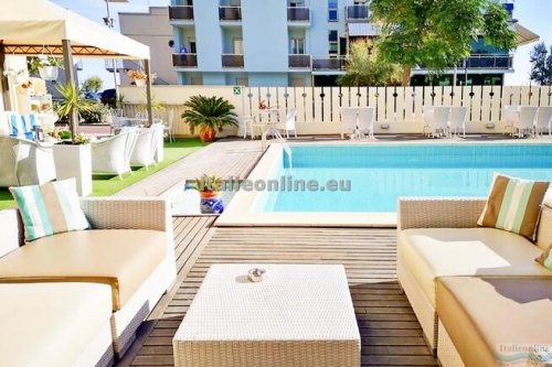 Hotel Alba se nachází v letovisku Misano Adriatico, pouhých 50 metrů od písečné pláže, u pobřežní promenády a blízko centra s mnoha obchůdky, nákupními centry a zábavními parky. Pro hosty je k dispozici recepce, bar, restaurace, venkovní bazén se slunečníky a lehátky, Wi-Fi připojení, půjčovna kol a parkoviště (do zaplnění kapacity). Na místě lze zakoupit plážový servis za poplatek 14–16€/pokoj/den (dle sezóny).