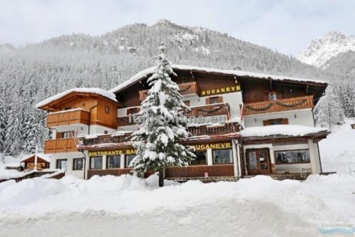 Hotel Bucaneve se nachází v oblasti Fanch, přibližně 3,5 km od skiareálů Alpe Lusia a San Pellegrino-Falcade. Mětečko Moena je vzdálené zhruba 10 minut jízdy autem. Pro hosty je k dispozici recepce, výtah, Wi-Fi připojení, restaurace, společenská místnost s TV, bar, zahrada, terasa, lyžárna, parkoviště dle dostupnosti, garáž za poplatek a sauna za poplatek 10 €/30 min. Zastávka skibusu je umístěna u hotelu (služba je zahrnuta v ceně Guest Card).