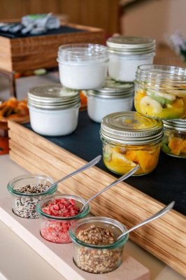 Snídaně formou bufetu se podávají v salonu nebo na terase.