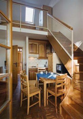 Pokoje o výměře cca 37 m2 s možností 1 přistýlky (vhodná pro dítě do 11,99 let) jsou vybaveny vlastním sociálním zařízením, kuchyňským koutem, SAT/TV a terasou. Manželská postel se nachází na galerii, možnost přistýlky v denní místnosti/obývacím pokoji.