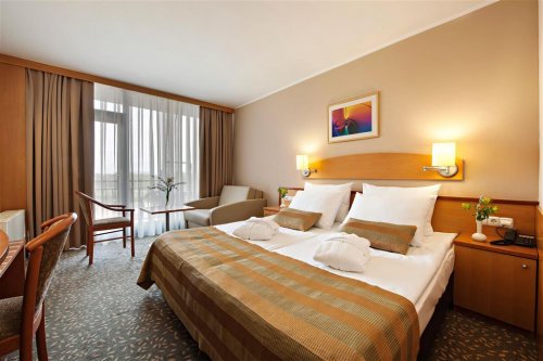 Pokoje o výměře cca 20 m2 jsou vybaveny manželskou postelí nebo dvěma oddělenými lůžky, klimatizací, vlastním sociálním zařízením, fénem, telefonem, SAT/TV, trezorem, rozkládací pohovkou/křeslem pro dítě do 11,99 let a psacím stolem. Některé pokoje mají balkon s výhledem do parku (možnost volby při vytváření rezervace). K dispozici jsou také pokoje, které byly renovovány. Do pokoje lze ubytovat 2. dítě do 5,99 let bez nároku na lůžko (spí na lůžku s rodiči) a rozšířit maximální obsazení pokoje na 4 osoby (na úkor prostoru a komfortu v pokoji).
