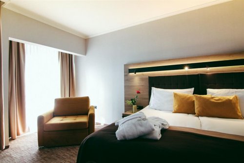 Pokoj o rozloze cca 27 m2 je vybaven vlastním sociálním zařízením, klimatizací, LCD TV, telefonem, gaučem, WiFi připojením, minibarem, trezorem, a fénem. Maximální obsazení pokoje jsou 3 dospělé osoby.