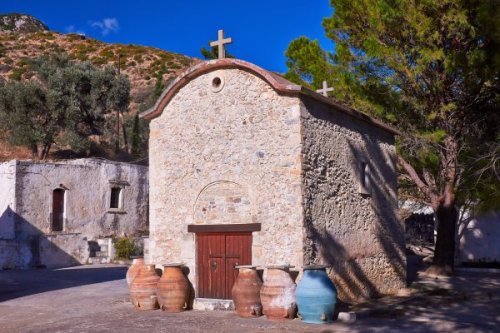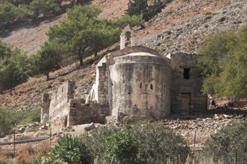 poutního místa s kaplí Agios Ioannis na okraji náhorní plošiny Messara,
