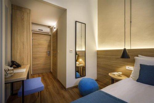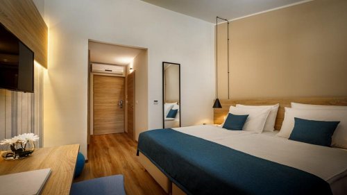 Pokoj o výměře cca 17–23 m² je vybaven vlastním sociálním zařízením, manželským lůžkem, TV, klimatizací, WiFi připojením a balkonem s výhledem na moře. Přistýlka je řešena formou rozkládacího křesla.