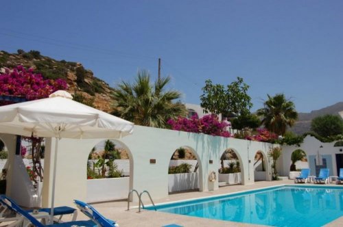 Jde o jednodušší 3* rodinný hotel s důrazem na tradiční pohostinnost a příjemnou atmosféru. Je položený ve svahu, má 35 dvou-třílůžkových pokojů s balkóny nebo terasami, které jsou rozmístěny v několika přízemních budovách. V hotelu najdete menší lobby s recepcí, trezory k pronajmutí (za poplatek), tradiční jídelnu, kde jsou podávány snídaně a 2 bary. V centru hotelu je sladkovodní bazén se sluneční terasou s lehátky a slunečníky zdarma (na pláži za poplatek). Z terasy je nádherý výhled na celou pláž Mylopotas. Součástí hotelu je i malé soukromé parkoviště.