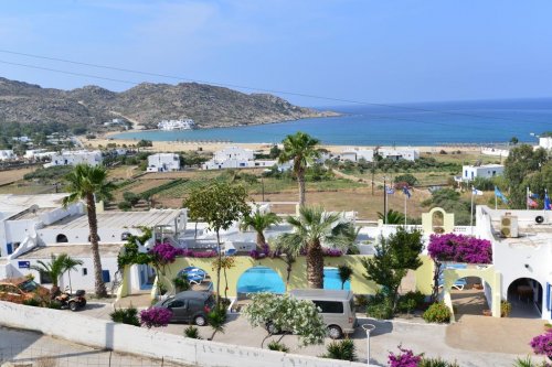 Hotel Marcos Beach je situovaný v pěší vzdálenosti (20 minut) od historického centra hlavního města ostrova Ios. Do Chory se dostanete rovněž autobusem, který má zastávku asi 250 m od hotelu. Hotel leží stranou hlavní silnice na vyvýšině nad nejkrásnější pláží ostrova Mylopotas. Od více jak 1 km dlouhé písečné pláže s pozvolným vstupem do vody je vzdálen necelých 200 m. Cesta na pláž vede kolem řady obchůdků, taveren, malých barů a kaváren. Jde o rodinný hotel stranou ruchu letoviska, který má nezaměnitelný půvab. Je položen ve vzrostlé zeleni se scenérií hor v pozadí. Doporučujeme výlet loďkou na snad nejkrásnější pláž Manganari na jihu nebo do zátoky Psathi na východě. Do hlavního města Iosu je to asi 900 m, přístav je vzdálen 3 km. Nejbližší letiště je na ostrově Santorini, kam cesta lodí trvá cca 40 minut.