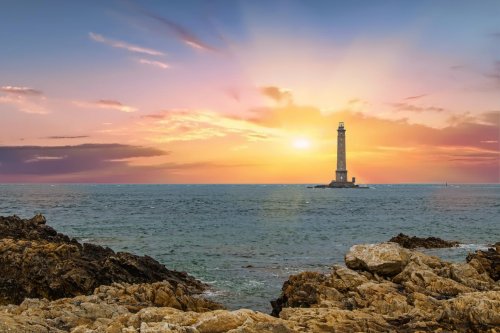 Alabastrového pobřeží. Procházku začneme u masivního majáku d'Antifer,