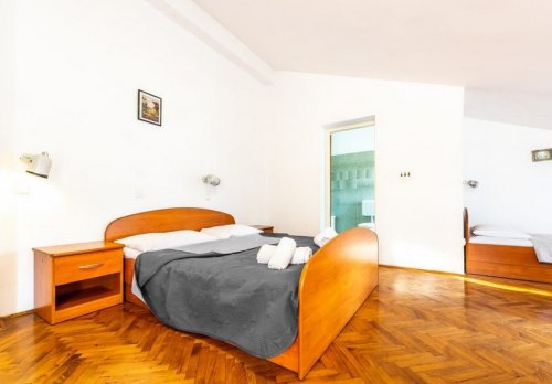 Apartmán pro 2+1 osoba: 1× třílůžková ložnice, obývací pokoj s kuchyňským koutem, koupelna/Wc, balkon Apartmán pro 5 osob: 1× dvoulůžková ložnice, 1× třílůžková ložnice, obývací pokoj s kuchyňským koutem, koupelna/wc, balkon