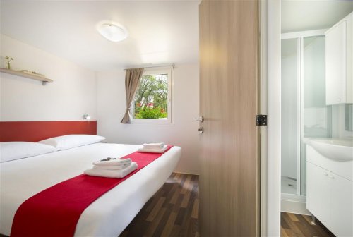 Mobilhome se skládá ze 2 dvoulůžkových pokojů (jeden s manželským lůžkem, druhý se dvěma oddělenými lůžky), obývacího pokoje s plně vybaveným kuchyňským koutem a rozkládací pohovkou, 2 koupelen a terasy se závěsy a posezením. Mobilhome dále disponuje SAT/TV, klimatizací a WiFi připojením zdarma. Mobilhome lze obsadit maximálně 5 dospělými nebo 4 dospělými a 2 dětmi