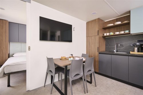 - Hosté si mohou vařit ve vybaveném kuchyňském koutě svého mobilhomu