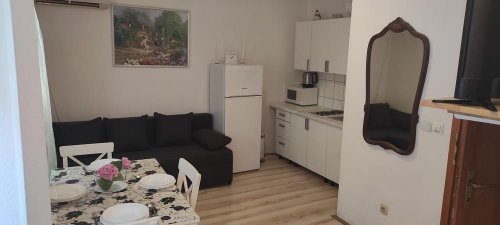 Apartmán se nachází v 1. patře soukromého domu v historické části městečka Omiše a je vybaven vlastním sociálním zařízením, ložnicí, obývacím pokojem s rozkládací pohovkou pro 2 osoby, kuchyní, SAT/TV, klimatizací, WiFi připojením a terasou. Ložnice se nachází v podkroví.