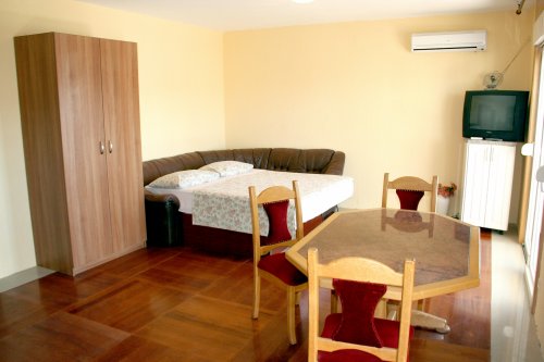Apartmán pro 3 osoby: cca 30m2, 1× třílůžková ložnice, kuchyňský kout, koueplna/wc, balkon s výhledem na moře, klimatizace, SAT/TV, garáž Apartmán 2+3 osoby: cca 35 m2, 1× dvoulůžková ložnice, obvývací pokoj s rozkládacím gaučem, kuchyšnký kout, koupelna/wc, balkon Apartmán 4+1 osoby: cca 78 m2, 2. patro, 2× dvoulůžková ložnice, obývací pokoj s rozkládacím dvougaučem, kuchyňský kout, koupelna/wc, balkon s výhledem na moře