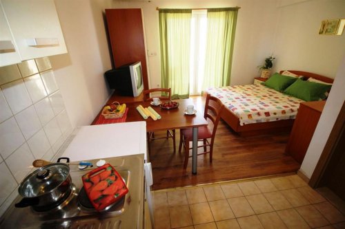 Apartmány se nachází ve 2. patře a mají rozlohu cca 20 m2. Studio je vybaveno manželskou postelí, kuchyňským koutem se základním vybavením, vlastním sociálním zařízením a balkonem.