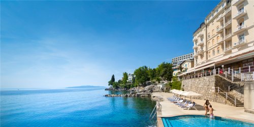 Hotel se nachází přímo u pláže v lázeňském městečku Opatija.