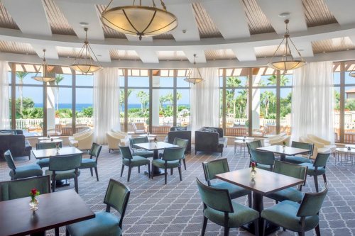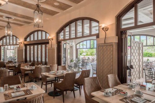 Snídaně formou bufetu, možnost dokoupení polopenze, plné penze. K dispozici je řada restaurací, které servírují italskou, japonskou a mezinárodní kuchyni. Stolovat je možné i venku při výhledu do zahrad a na moře.