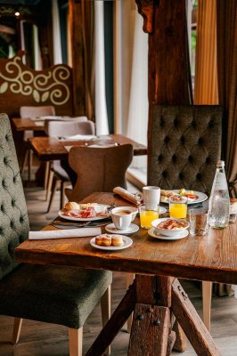 polopenze: snídaně – bufetovévečeře – servírované o 3 chodech, výběrem z menu, salátový bufet, voda