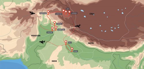 Stará kultura pákistánského Lahore, duchovní sikhský Zlatý chrám v Amritsaru, tajemný Kašmír a jeho jezera, prolínání islámu a hinduismu, kde za himálajskými kopci je už cítit buddhismus indického Tibetu. Zážitky na každý den, nádherné himálajské výhledy, ale i cestovatelská dřina. Poznejete pravou exotiku!