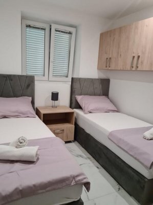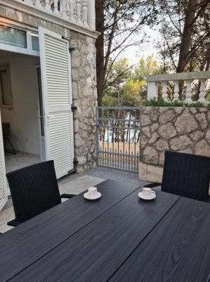 moderní apartmánový dům se nachází v první linii od moře, od kterého ho dělí pouze úzký pás borovicového lesa. Villa je situována v klidném letovisku Dolaška Drage, které je jen 3 km od Pakoštane a nachází se mezi Jaderským mořem a Vranským jezerem. Naproti letovisku Drage se nachází kouzelný ostrov Vrgada s písečnou pláží, kam se můžete vydat na výlet z Pakoštane. V blízkosti vily u pláže se nachází restaurace s barem, malý obchod je pak asi 100 m od vily. Na nákupy doporučujeme velký supermarket v sousedním Pakoštane. Pláž je zde přírodní kamenitá nebo oblázková s pozvolným vstupem do moře. Letovisko je ideální pro každého, kdo hledá klidnou dovolenou. Moře je od vily vzdáleno cca 50 metrů