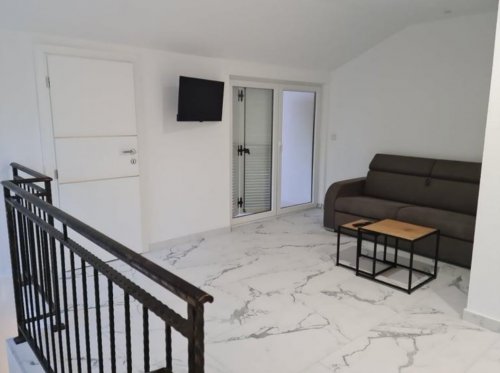 Apartmán A4+2 (malá terasa 10m2) – v přízemí, dvě oddělené ložnice pro 2 osoby, v obývacím pokoji rozkládací pohovka pro 2 osoby, kompletně vybavená kuchyň včetně myčky na nádobí, mikrovlnná trouba, rychlovarná konvice, koupelna se sprchou, WC, klimatizace (používání zahrnuto v ceně), TV, terasa s posezením. Apartmán A4+2 (velká terasa 32m2) – zvýšené přízemí, dvě oddělené ložnice pro 2 osoby, v obývacím pokoji rozkládací pohovka pro 2 osoby, kompletně vybavená kuchyň včetně myčky na nádobí, mikrovlnná trouba, rychlovarná konvice, koupelna se sprchou, WC, klimatizace (používání zahrnuto v ceně), TV, terasa s posezením. Mezonetový apartmán A6+2 – patrový apartmán, kde se dole nachází ložnice pro 2 osoby, prostorný obývací pokoj s vybavenou kuchyní (myčka na nádobí, mikrovlnná trouba, rychlovarná konvice), koupelna s WC, terasa s posezením. Po schodišti se dostanete do druhého patra apartmánu kde jsou další 2 ložnice pro 2 osoby, obývací pokoj s rozkládací pohovkou a druhá koupelna s WC, balkón s posezením, klimatizace je na každém patře. Apartmán je ideální pro větší rodinu nebo přátele, kteří chtějí strávit společnou dovolenou