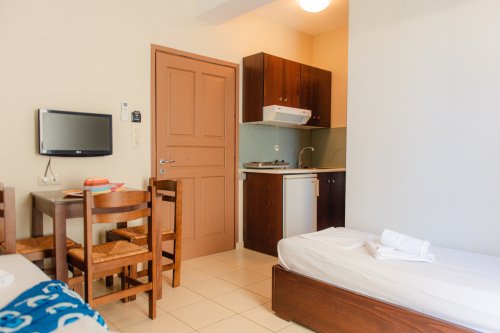 Studia a aparmány pro 2–4 osoby jsou vkusně zařízené, mají sociální zařízení se sprchou, kuchyňský kout s vlastní ledničkou a varnou deskou, klimatizaci zdarma, WI-FI s připojením zdarma a balkonem s výhledem na Libyjské moře (některé), bazén, hory nebo do zahrady. Pokoje všech katagorií mají sociální zařízení se sprchou, klimatizaci zdarma, WI-FI s připojením zdarma a balkonem s výhledem na Libyjské moře (některé), bazén, hory nebo do zahrady.