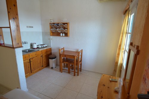 mají sociální zařízení se sprchou, klimatizaci (poplatek), TV, WiFi připojení (zdarma), kuchyňský kout vybavený lednicí a základními potřebami k přípravě jídel a nápojů, balkón nebo terasu (u většiny studií s výhledem na moře-nutno sjednat předem).