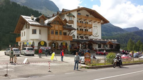 Hotel v typickém horském stylu na klidném a slunném místě.