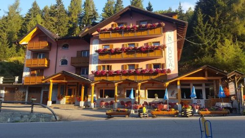Hotel La Roccia se nachází u silnice vedoucí z Passo Tonale do Ponte di