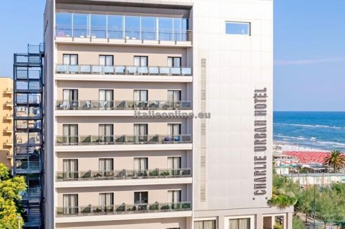 Hotel Charlie se nachází ve městě Pesaro v regionu Marche, přímo u písečné pláže, cca 200 metrů od centra města a přibližně 2 km od vlakového nádraží. Pro hosty je k dispozici recepce, výtah, Wi-Fi připojení, bazén, bar u bazénu, restaurace, lounge bar v 6. patře s výhledem na moře a promenádu, bistro, jízdní kola dle dostupnosti, prádelna za poplatek, půjčovna aut s řidičem za poplatek, konferenční místnost a podzemní parkoviště za poplatek 25 €.