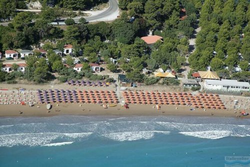 Prázdninové středisko Villaggio Grotta dell´Acqua je postavené přímo u jedné z nejkrásnějších pláží Gargana, která je ohraničena útesem a starou strážní věží Torre di Sfinale. Villaggio se nachází mezi městy Vieste a Peschici (cca 11 km) a je pojmenováno podle asi 3 km dlouhé jeskyně Grotta dell’ Acqua u městečka Peschici. Nabízí ubytování v pohodlných bungalovech vybavených krytou verandou. K dispozici je bar, restaurace a pizzerie, obchod, trafika, parkoviště, tenisový kurt a fotbalové hřiště (za poplatek), animace (v červenci a srpnu, v italštině), dětský koutek, ping–pong, plážový volejbal a prádelna na mince, zóna wifi. Cena zahrnuje plážový servis: slunečník + dvě lehátka (od 3.řady dál), 1. a 2. řada za příplatek. Pokud je v apartmánu ubytováno 5 nebo 6 osob (nutno vyžádat při rezervaci, za příplatek), musí se navíc povinně přikoupit další plážový servis za poplatek 10 – 16 €/den (dle období). Nástupním/odjezdovým dnem u apartmánů Atena je sobota, u apartmánů Eolo neděle. Na vyžádání při rezervaci možnost pobytu s malým pejskem do 8 kg za poplatek 12 – 15 €/den (podle termínu), nesmí na pláž.