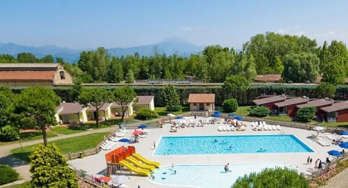 Peschiera a jen 200 m od jezera. Bungalovy a mobilhomy jsou obklopené zelení,